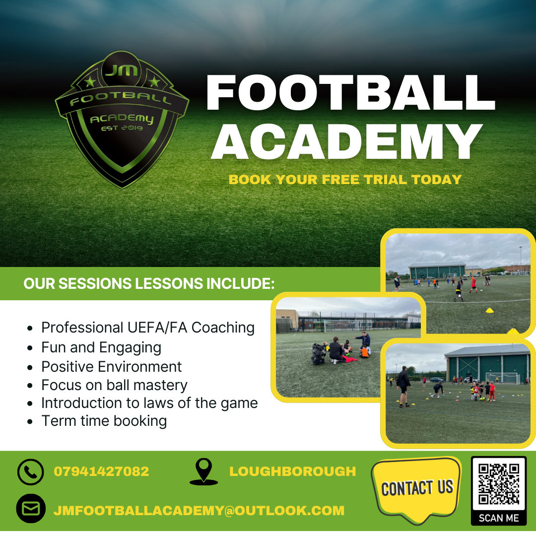 Since launching JM Football Academy in 2019, we have developed the reputation as one of the most successful independent football academies within Leicestershire. JM Football Academy works with several respectable partners locally across the football community ensuring that every player has the best experience possible whilst under our care.
